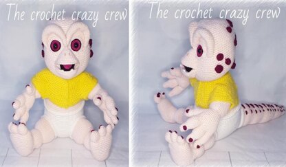 We would like to introduce to you 'Baby Dino' he is worked in basic stitches and rounds, is worked in DK (8PLY), is written in US terminology and stands at approximately 13" in height.