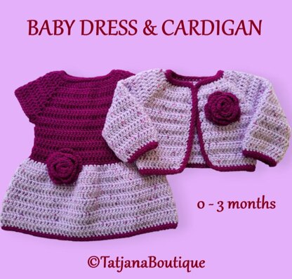 ♥ Crochet Pattern Baby Dress and Cardigan Bolero ♥ Size in this pattern 0 - 3 MONTHS. The pattern is written in US crochet terms but with a conversion at the beginning of the pattern to UK / Australian terms. Its just that some of the names of the stitches are different. Materials & tools you will need: ★ Acrylic or other yarn 150 gr approx. - DK, Double Knitting in UK, Light Worsted in the USA, 8ply in Australia. ★ Crochet hooks sizes recommended 4.5 mm and 5 mm. ★ 1 small button. ★ Yarn needle to weave in ends (optional).