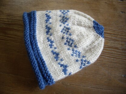 A beautifully soft baby beanie inspired by Norwegian traditional designs and wintry days. The Fairisle pattern gives this little hat an extra warmth to keep baby cosy.