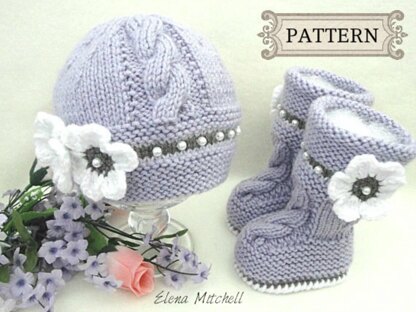 The Baby Hat and Booties are knitted on two needles ( Flat work ).
