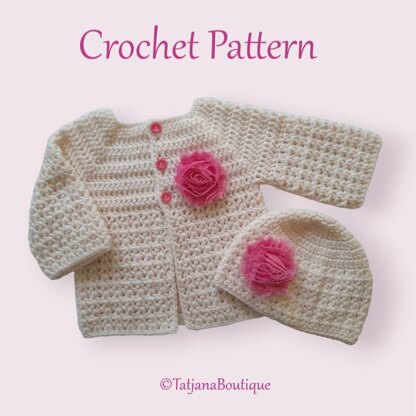 Crochet pattern baby cardigan and hat set. ♥♥♥