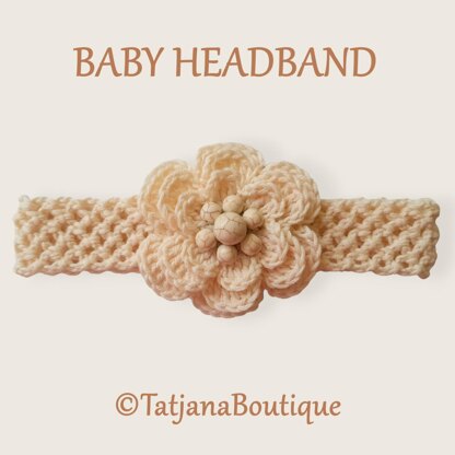 Crochet pattern baby stretchy headband decorated with crochet flower and pearl beads. ♥♥♥ The pattern is written in US crochet terms but with a conversion at the beginning of the pattern to UK / Australian terms. Its just that some of the names of the stitches are different. Sizes in this pattern: 0 - 3 months, 3 - 6 months and 6 - 12 months. Materials & tools you will need: ★ Cotton yarn - 4 Ply in UK, Sport in US, 5 Ply in Australia. ★ Crochet hooks size 3.5 mm. ★ Pearl beads 1 x 10 mm and 6 x 6 mm in diameter. ★ Yarn needle to weave in ends.