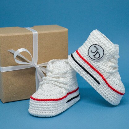 This crochet pattern is for create a miniature copy of fashionable sports shoes. Crochet baby booties will be an excellent and memorable pregnancy gift, gift for a young mother and baby - will give delight and tenderness.