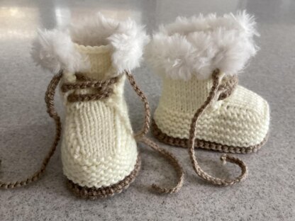 Knitted Baby Booties - Pattern Makes Three Sizes - Made in one piece on two straight needles. This pattern is suitable for an advanced beginner.