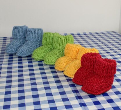 The booties are worked flat on 3.25 mm needles in any dk (8ply) yarn of your choice.