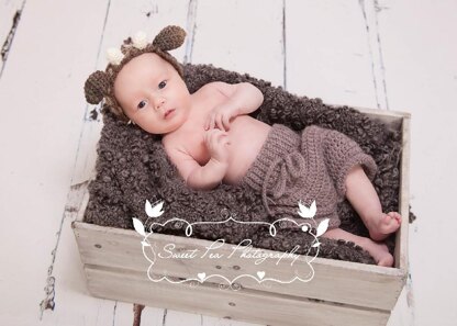 This baby reindeer headband, complete with ears and horn buds, uses simple stitches and can be made quickly and easily using offcuts of yarn.