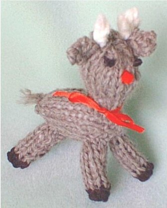 The sweetest of all reindeer is this one! Cute little baby, is so Jolly and easy to knit! Use up scrap yarns and make some for baby toys too. Finished size is about 4 inches tall. This works up fast, so you can make several in a day. Hang these all over the house for Holiday Decorating, or anywhere there is a Santa in your house! Uses worsted weight yarns, knitting needles, US # 7.