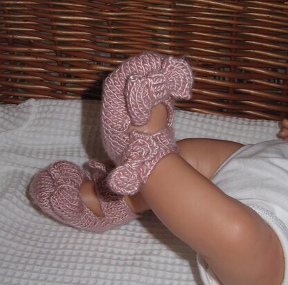 Here is my Baby Ribbons and Bows knitting pattern.I chose Debbie Bliss Pure Silk and the small size only takes one 50g skein for both the shoes and the hat.Silk is perfect for a newborn baby as its so soft and natural but you can also use any other yarn with the same gauge. The "buttons" are tiny silk bows making these shoes safe and perfect for baby. The pattern provides full instructions for 4 sizes XS, S,M & L so this matching set can be made for preemie babies,tiny babies,newborns and babies up to 9 months old.