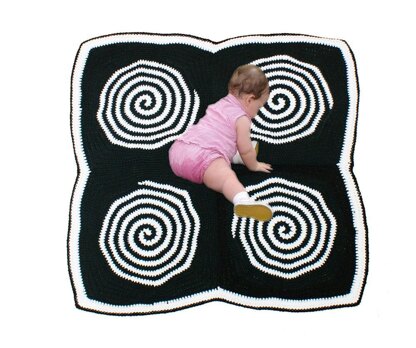 The spiral pattern gives it visual interest for the baby who will be crawling all over it, plus the fact that it is black and white means stains from messy baby will be easily masked.
