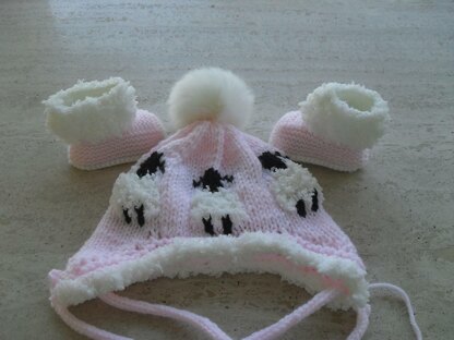 Knitting Pattern Baby Sheep Hat And Booties Unisex This Pattern is Made on Two Needles The Hat Pattern Makes Four Sizes 0 to 5 Years The Booties Are Pre Walkers 0 to 3, 3 to 6 and 6 to 12 Months.