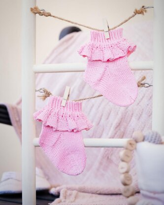 NOTE: Socks are knitted both flat and in the round on double-pointed needles. Spcks have gusset heels and legs are decorated with fantasy pattern frills. To make this pattern easier to follow, the sizing instuctions are color-coded.