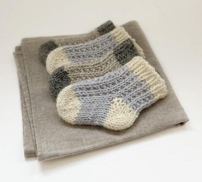 Adorable baby socks knitted from toe-up with short row heel.