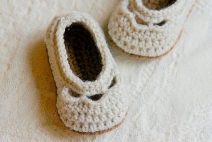 Crocheted using DK weight yarn or light worsted weight yarn for the top and worsted weight yarn for the sole.