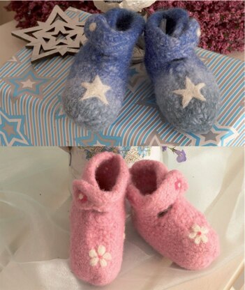 Babyschühchen in Schachenmayr Wash + Filz-it! multicolour and Wash + Filz-it! - 6709A_6709B - Downloadable PDF
