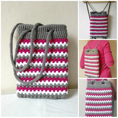 You can convert your crochet backpack to a shoulder bag in one easy movement. This crochet bag is perfect for a tablet or smaller computers . This unique crochet stitch makes your bag puffy, padded, but very stable and without any holes. That looks identical on both sides!