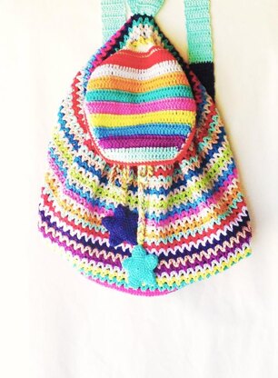 Make this lovely rugsack with this easy to follow crochet pattern. If you purchase this pattern you will get a PDF with all information you need to make this bag. The pattern of the stars - part of the closure of this bag - is included as well.