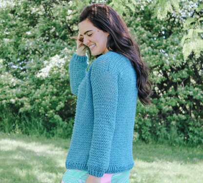 The Bahama Breeze Cardigan is a size-inclusive, beginner-friendly crochet pattern. The cardigan primarily uses single crochet and chain spaces. It has a classic fit with 2-4 inches of positive ease. If you would like a very oversized fit, I recommend going up a size.