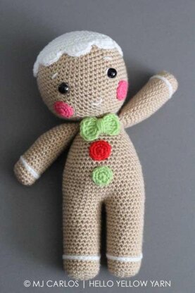 This listing is an original pattern in pdf written in English using US Crochet Terminology to crochet your own amigurumi Gingerbread Man. Baker the jolly Gingerbread Man hopes to bring a smile to everyone this Holiday season.