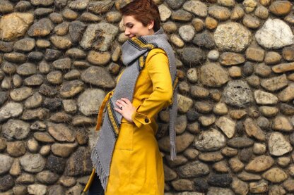This scarf is worked mostly in stockinette for simplicity but kept interesting by its angular shaping. The blocks of contrast with it's pop of colour give it visual interest along with some subtle texture and a bit of eyelet lace. Worked in bulky yarn it makes a bold statement and is super cozy to wear!