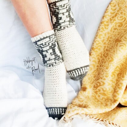 Crochet these warm and cozy Baltic Winds Snug Socks for yourself or a loved one!