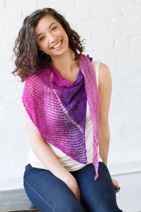 Everyone these days seems to be making asymmetrical triangle shawls. Not wanting to be left out, I designed Bandwagon. This shawl starts in one corner and is worked sideways in an eyelet pattern. As the shawl increases, so does the interest – it takes a turn and a garter stitch triangle starts to form. Bandwagon ends by decreasing down to three stitches, giving it its triangle shape. Worked in a beautiful gradient yarn from KnitCircus, you can’t go wrong jumping on this bandwagon!