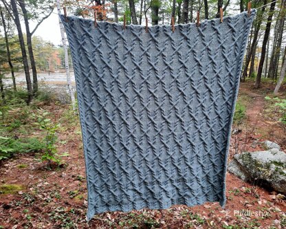 This cozy afghan with its striking all-over cable design works up quickly in bulky weight yarn. Designed to keep you warm on chilly evenings around the fire pit or extra cozy on the couch for movie nights. It is knit flat on a long circular needle.