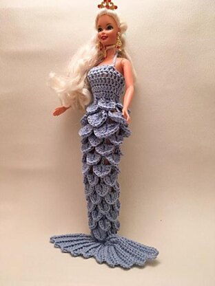 Crochet Pattern for a beautiful Barbie Mermaid Suit. This was designed to fit the 11.5” Barbie sized Doll. A strappy, fitted Bodice with Belt, Crocodile/Shell Stitched Tail and Ribbed Tail Fin. Pattern includes written instructions and reference photos. 6 pages, 20+ photos