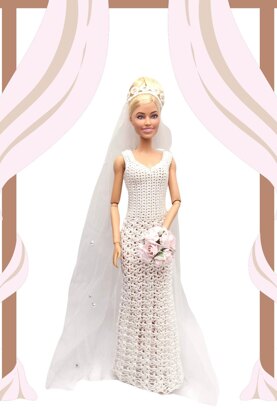 Here comes the bride! How about a handmade crochet dress for Barbie’s wedding? The crochet technique used here allows for intricate pattern that create the flowing, graceful lines of a mermaid gown, making Barbie’s wedding outfit not just a toy accessory, but a piece of art worthy of admiration. This dress could easily become the centerpiece of a cherished collection or a beautiful gift that evokes the magic and romance of a wedding day.