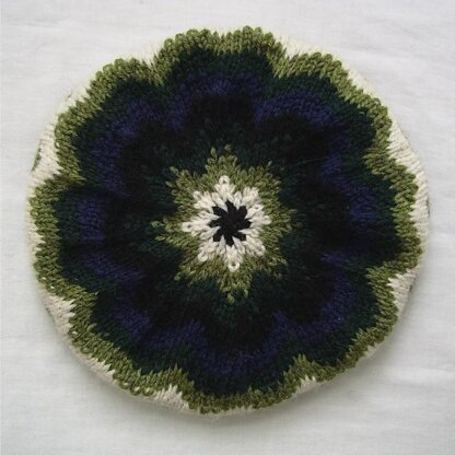 Inspired by Bargello embroidery, the top of the tam has almost a floral pattern. This tam uses only one color per round. A variation of False Flame stitch is used to create the pattern.