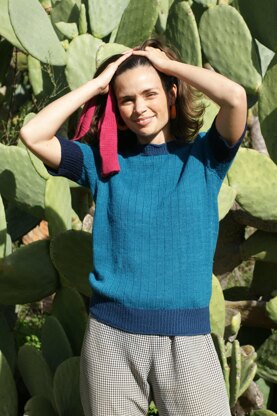BARONESSA MERINO - chic short-sleeved jumper in a 4-ply (fingering weight) wool. The pattern is an elegant ribbed pattern which features The Baronessa series. The jumper is quite long and with the tight ribbed welt this gives a nice "baggy" look. Excellent to wear over a shirt like a sleeved slipover. Beautiful together with a skirt, jeans or the woollen slacks Baronessa Merino Slacks.