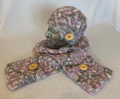 Bars and Ribs Hat and Scarf With Hand Warming Pockets