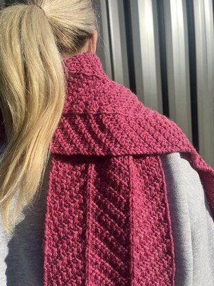 This bulky knit textured scarf offers a relaxing and mediative knit. Simple knit and purl stitches combine effortlessly to create a textured chevron stitch pattern that is so much easier to knit than it appears. The stitch pattern is reversible making this the perfect scarf that will fly off the needles. The pattern derives its name from a meandering local river.