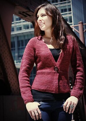Chic Knits Basic Chic V-Neck Cardi is knit in one piece from the bottom up, with sleeves picked up and knit down, in the round.