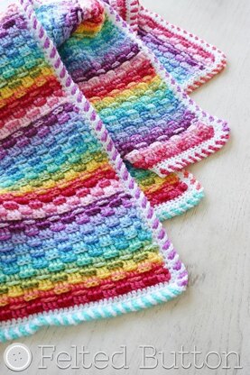 Take a simple textured stitch pattern that looks woven, add some colorful stripes and you've got The Basket of Rainbows blanket! It can be worked up in any dimensions you wish and with any number of colors.
