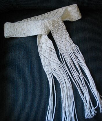 The beautifull texture of this belt is created with a basketweave stitch, which consists of a series of front and back post double crochets. Worked with cotton thread, this stylish belt sports a long fringe tipped with beads. A nice addition to any wardrobe!