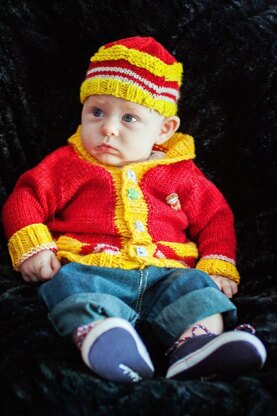 Sizes: 3 months (6 months, 12 months, 18 months, 24 months, 2, 4, 6), shown in a size 12 months. Finished Dimensions: Chest: 17.5 (17.5, 19, 20, 21.5, 22, 25.5, 27) /44.5 (44.5, 48.5, 51.0, 54.5, 65.0, 68.5) cm Gauge: 18 sts/28 rows = 4”/10 cm
