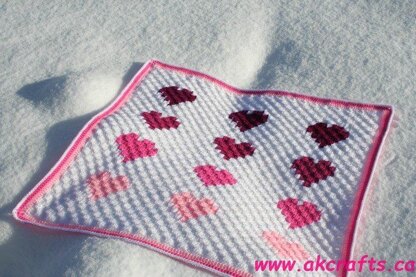 This Pattern is very cute Valentine Baby Blanket. It is very easy to crochet and suitable for beginners. It is a Corner to Corner crochet pattern with multiple colors. 5 to be exact. It consists of 85 Rows.