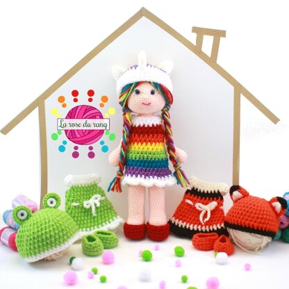 This pattern includes instructions for the basic doll and following costumes: Unicorn Frog, Fox, Witch, Black cat, Monster, Reindeer, Santa's helper, Penguin, and Polar Bear. *The instructions for the basic doll repeat before each sets of clothes because these were originally stand alone patterns.