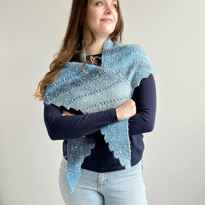 One edge of the shawl stays straight, and the other increases, then decreases to make a triangle shape. The lower edge has teeth!