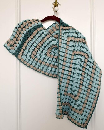 I love the soothing, repetitive motions of making granny squares. This rectangular shawl uses a variation on the traditional granny square pattern. It’s easy to adapt the pattern to your favorite size. The stitch pattern allows for a bit of air flow so you don’t get too hot when wearing it.