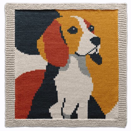 Honor the loyal and adventurous spirit of the beagle with this Beagle Square Knitting Pattern. Featuring the iconic look of a floppy-eared, bright-eyed adult beagle, this pattern adds warmth, charm, and personality to handmade projects. Ideal for dog lovers, nature enthusiasts, or anyone who admires this beloved breed. Worked flat with a neat garter stitch border around a smooth stockinette center, this square is perfect for cozy blankets, decorative pillows, tote bags, chair covers, wall art, placemats, bath mats, or even as a bold sweater panel. Includes a clear colorwork chart and full row-by-row written instructions. A great colorwork project to practice intarsia or duplicate stitch, or adapt it for machine knitting. Finished size depends on yarn: Sport 37×37cm (120g), DK 46×46cm (140–180g), Aran 52×52cm (250g). Gauge: Sport 22×32, DK 18×26, Aran 16×23 (per 10×10cm). Language: English. A charming design for your next creative adventure!