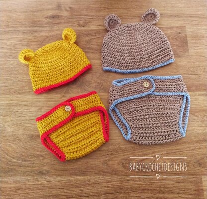 Bear Diaper / Nappy Cover and hat set Crochet Pattern