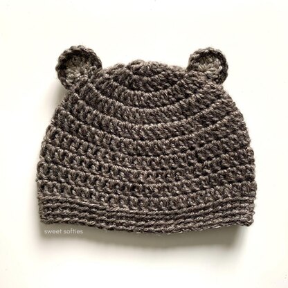 The Bear Beanie is a cute hat that features two-colored teddy bear ears. This beginner-friendly pattern is quick to work up with basic stitches, yet offers some nice texture and edging. It can be crocheted for any age, and instructions are available for all sizes along with tips on how to adjust the pattern to fit any head size (newborn baby, toddler, child, teen, adult, etc). A hat sizing and measurements reference chart is included. This animal headwear is perfect as a birthday gift, baby shower present, holiday and Christmas gift, or craft fair product.