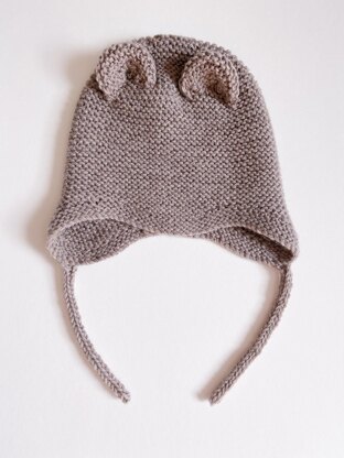Adorable bear-ears hat with earflaps for babies and toddlers in DK weight yarn!