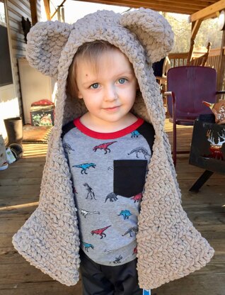 This hooded scarf has a toddler and child size and is easily adaptable to fit other sizes. I used about 300-400 yards of the main color and around 50 yards (or less) of the contrasting color. I hope you enjoy this pattern!