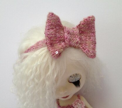 Sweet little knit bow headband for your Blythe doll. With elastic at the back for a good fit.