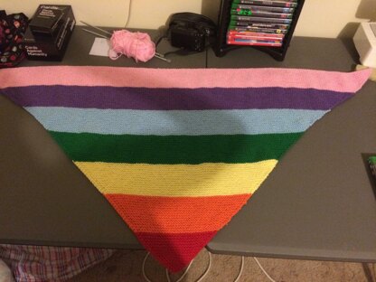 A beautiful rainbow shawl that is eye catching, warm and a lovely piece of clothing, it has a lot of personality and colour, it is the perfect size for keeping your arms and back warm, whether you wear it over the shoulders or just around your arms, its a beautiful piece.
