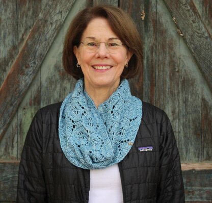 Becca Lane has a lovely lace pattern. This is knit in the round, and knits up super-fast. The pattern is written out and charted. Cowl size shown.