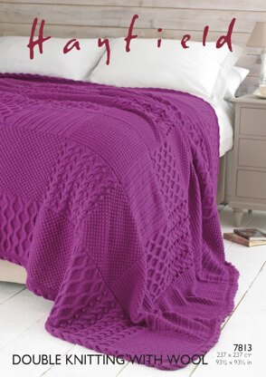 Bed Throw in Hayfield DK With Wool - 7813- Downloadable PDF