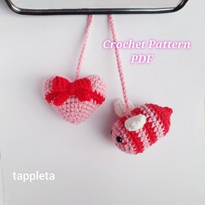 Heart with Bow and Bee charm - cute project for Valentine's Day. Car hanger Crochet Pattern PDF.